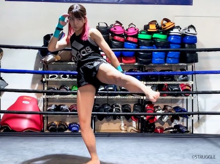 STRUGGLEののYouTubeチャンネルにて、ぱんちゃんと一緒にキックボクシング基本技術シリーズをアップしております。