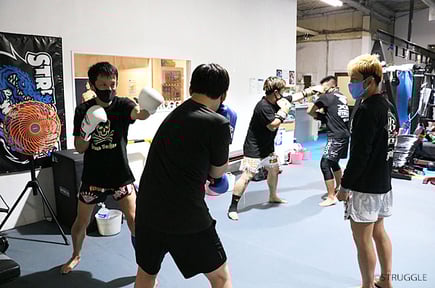最初はスティックパンチで距離感を意識。