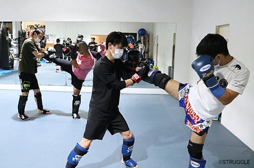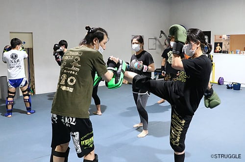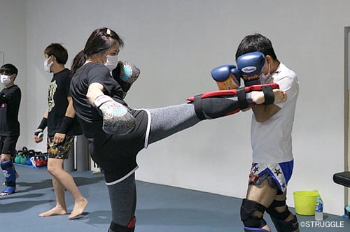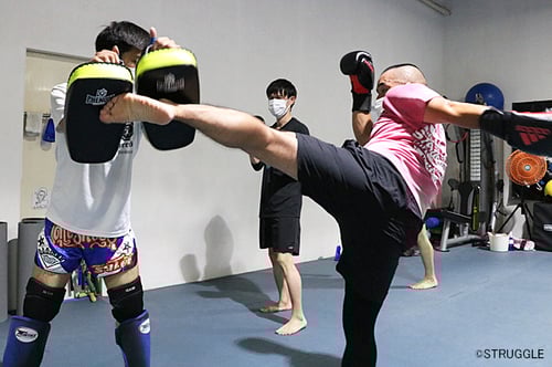 更にトレーナー陣が持ってるミットへの蹴り込みサーキットトレーニング!