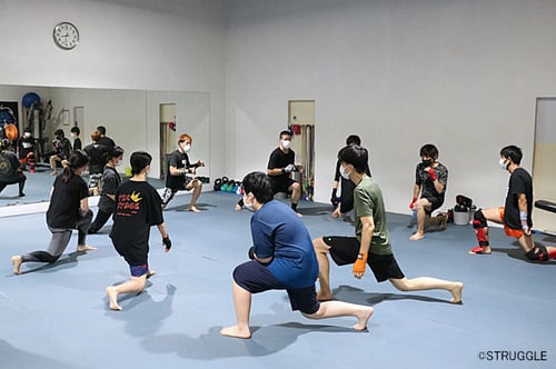 さらにパンチを避ける練習をして、最後は皆で下半身の筋トレ!