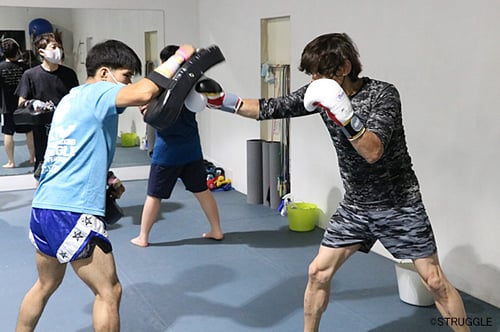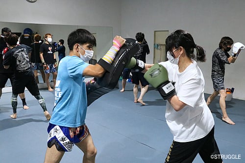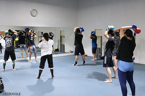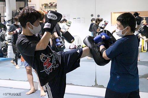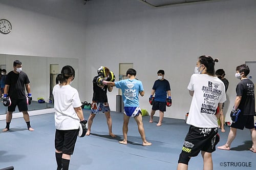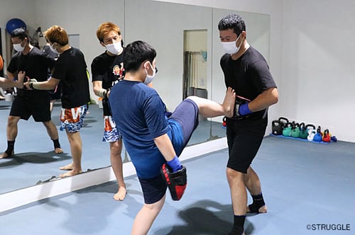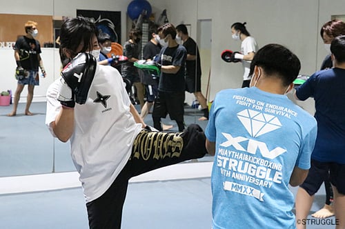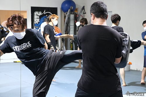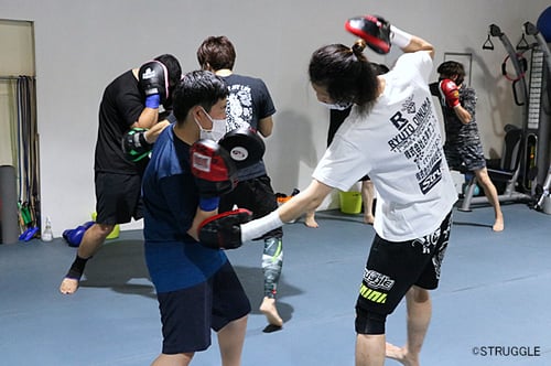 9月28日(水)のキックボクシング初心者クラスはウォーミングアップでは前蹴りからのミドルキックをフォームと繋ぎ方を重視して行いました。