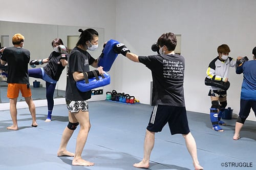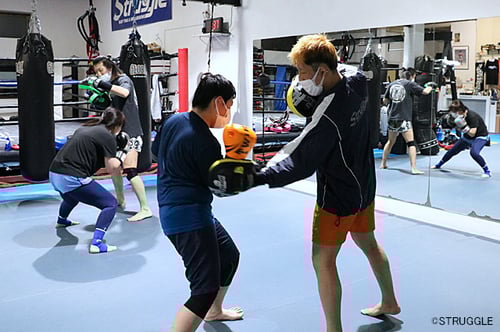 トレーナー陣がミットを持っているので、いつもよりもテクニカルな展開で相手の動きに合わせて動いて反撃!