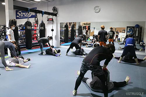 2月1日(水)のキックボクシング初心者クラスはパートナーストレッチからスタート!