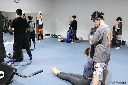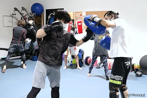 初心者クラスの後は皆さんトレーナー陣とのミット打ち。