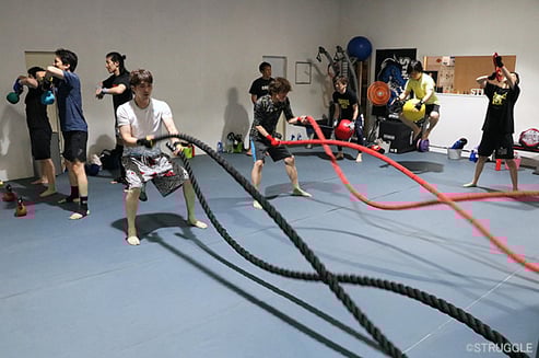 最後はロープ、ケトルベルなど様々な道具を使ってのクロスフィットサーキットトレーニング。