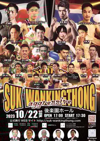10月22日(日)SUK WAN KINGTHONG aggressive(後楽園ホール 17:20試合開始)に老沼隆斗、磯貝雅則が出場します!!