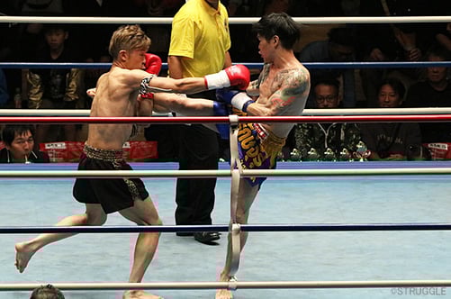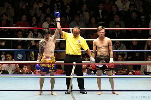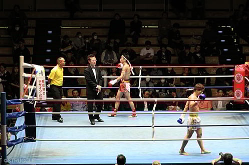 老沼はメインイベントでスックワンキントーン フライ級チャンピオン、ジュライ・ウォーワンチャイ選手に挑みました。