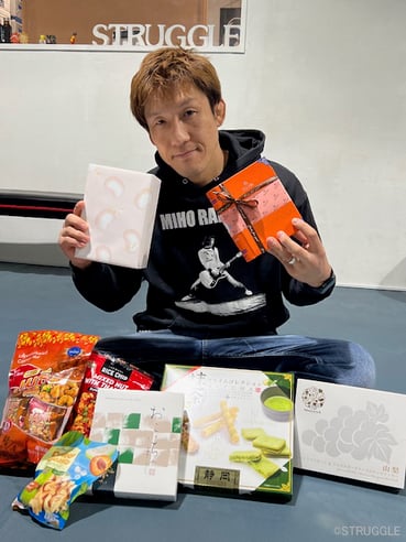 ジムの受付カウンターにお土産のお菓子を置いてるので、皆んなでちょっとずつ幸せを分かち合いましょー!