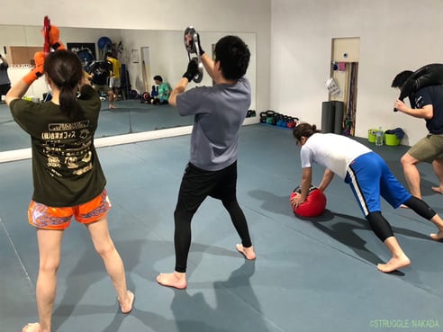 この時間帯はマススパーリングは無しでミット打ちとクロスフィットサーキットトレーニングメインの練習になります。
