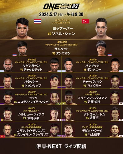 明日5月17日(金)21:30スタート、U-NEXTでLIVE配信されるONE FRIDAY FIGHTS 63の日本語解説を担当させていただきます!