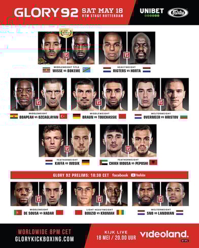 5月18日(土)深夜25:30(19日(日)午前1:30)からU-NEXTでライブ配信されるGLORY 92 フランス大会の日本語解説を担当させていただきます!
