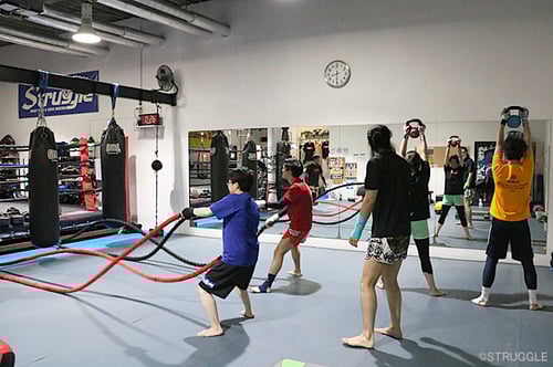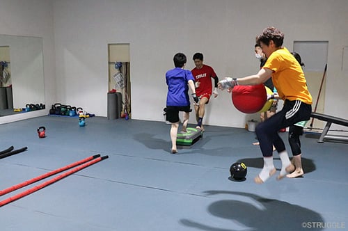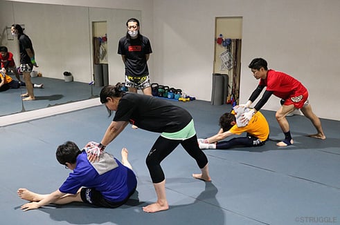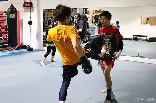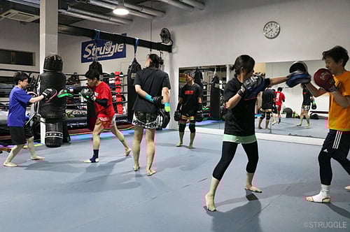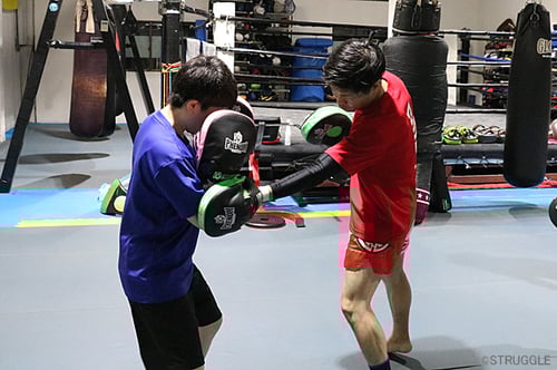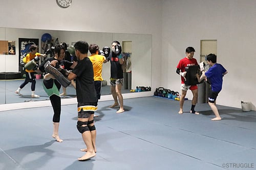 3人のトレーナー陣とサーキット形式で打ち込み&蹴り込み練習。