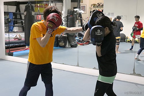 パンチングミットだと力を抜いてできるのと怖さが減るのでいい練習になります。