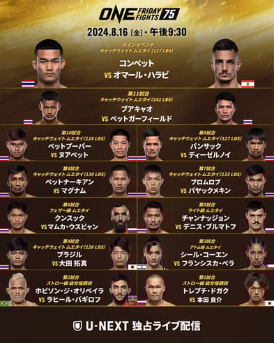 8月16日(金)21:30からU-NEXTでライブ配信されたONE FRIDAY FIGHTS 75の日本語解説を担当致しました!