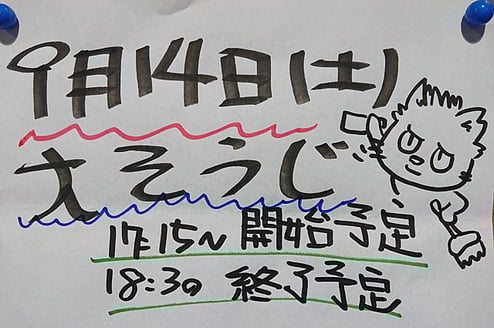 9月14日(土)の17時15分~ジムの大掃除をやります。
