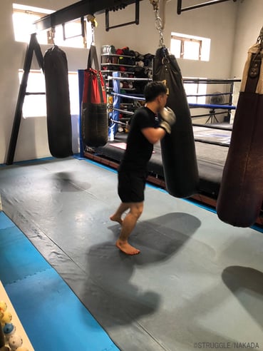 サンドバッグを1Rしっかり打つって集中力がいるし、サンドバッグが動いてるとこに打ち込むって難しいです。