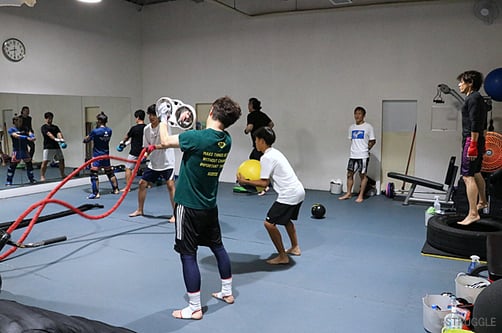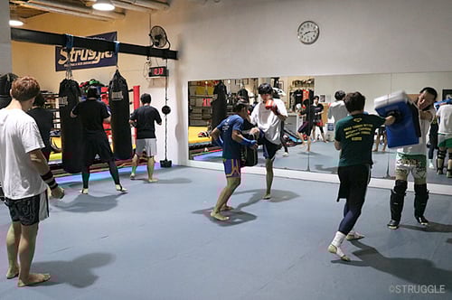 ストレート系のパンチは戻しも意識して行ったり、ミドルキックの際の足の切り替えスイッチを練習したり、前蹴りのフォーム練習をしたり。