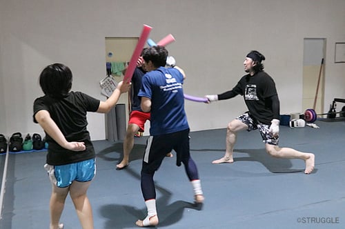 11月13日(水)はストレッチからスタートして、スティックでパーリングなどパンチを避けるテクニックを色々と練習してウォーミングアップ。