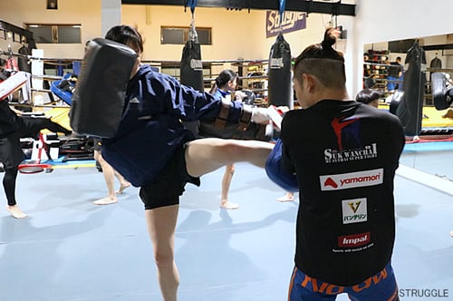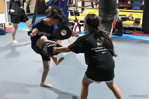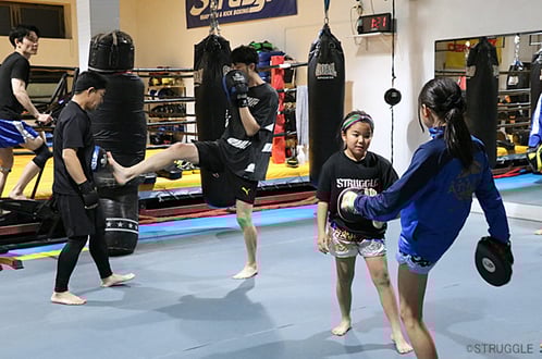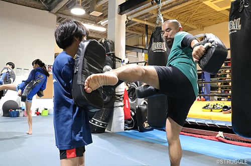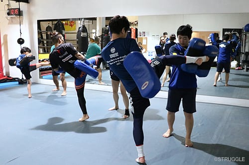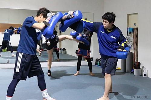 そして、プッシュしての反撃ミドルキックというムエタイテクニックも練習しました。