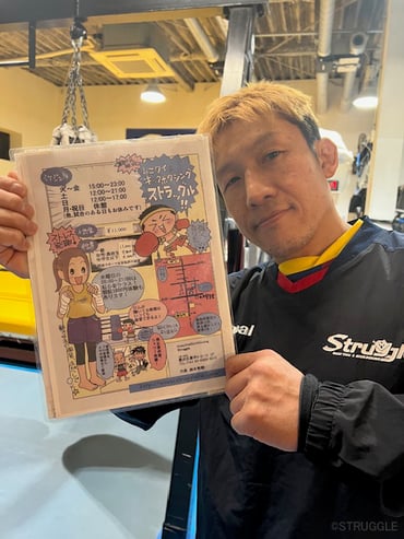 2006年のSTRUGGLEオープン当初に入会案内のイラストを描いていただいたり、当時のプロ選手大高一郎のイラストや松﨑公則の引退式の際にも素晴らしいイラストを描いてくださったり。