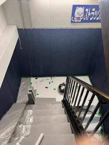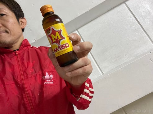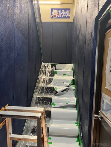 M-150飲んでエナジーチャージして、ジムの階段をペンキ塗り塗り!