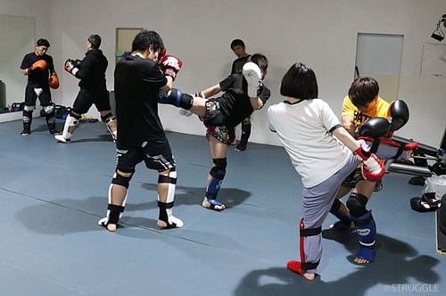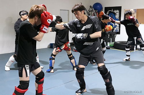 まだ慣れていない方にはトレーナーが攻撃してディフェンスをお教えしながら行いました。