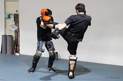 どんなに強いローキックやミドルキックでも骨盤や膝頭を蹴ったりしたら自身が足を痛めてしまいますので!