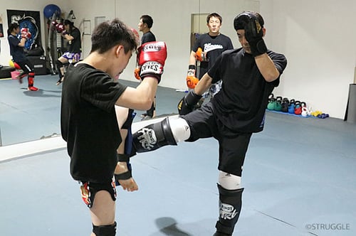 通常のローキックと相手の前足の内側を蹴るインローキック、奥足を蹴るローキックの基本を反復して練習しました。