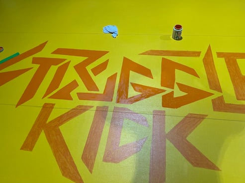 日曜の夜、ジム終了後にリングマットのSTRUGGLEロゴが薄くなってきたので上から塗り直しました。