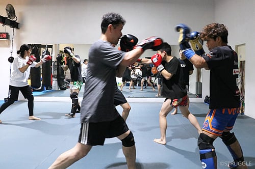 そして、フェイント繋がりでステップやフェイントを使ったミドルキック&前蹴りを練習しました。