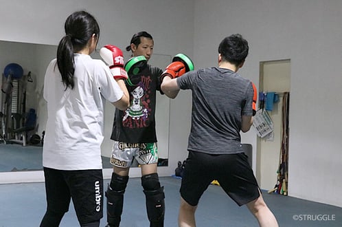 パンチメインのコンビネーションは大きく打ち過ぎずにコンパクトに打つことで決まりやすくなるので、強さよりも回転を意識してみてくださいねー。