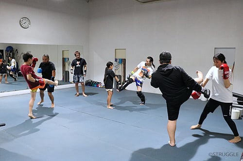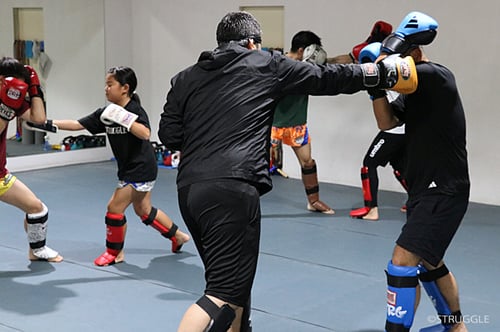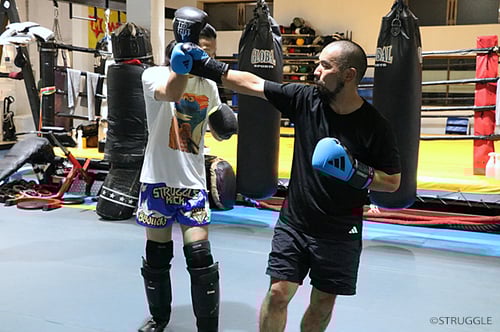 ストラッグルでは毎週(水)19:30~の初心者クラス以外の時間でもいつもトレーナー陣とのミット打ちを含む一人ひとりに合わせたトレーニングができますよー。