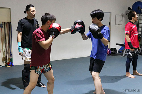 そのステップを交えて、パンチのパーリングやパンチからキックのコンビネーションなどを練習しました。