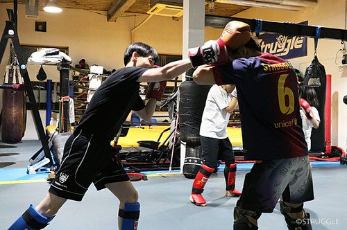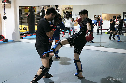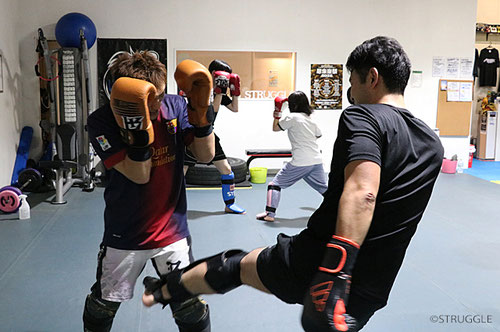 足を動かしてスイッチ、パンチやミドルキックのステップ、コンビネーションなどなど、キックボクシングの動きと全身を使うステップ系の練習をミックスして行ってます。