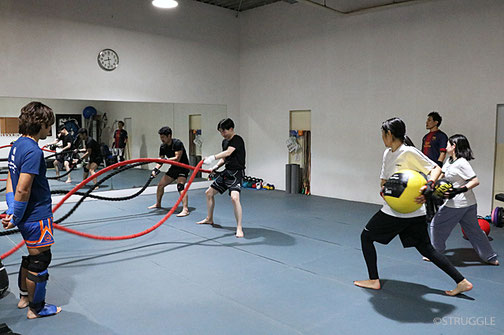 最後はヘヴィーロープとソフトメディシンボールで3種類ずつのサーキットトレーニング。