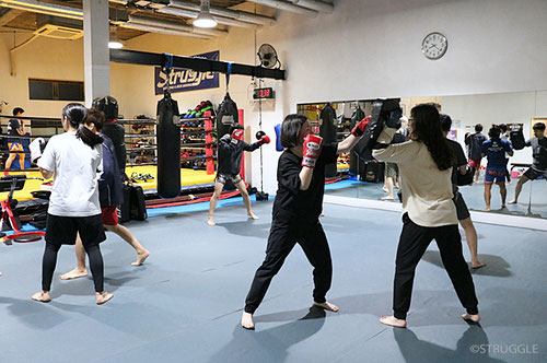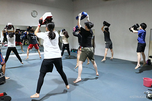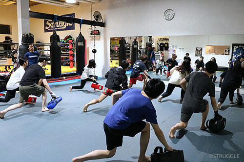 クラス以外の通常の練習時間もミット打ちなどキックボクシングの練習の後に少し筋トレをプラスすると効果的ですよー。