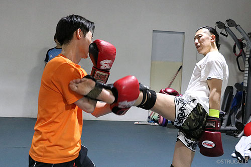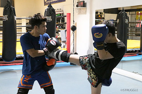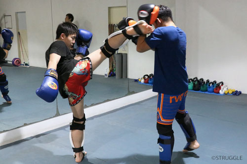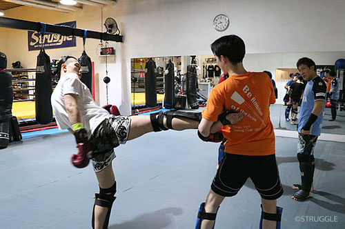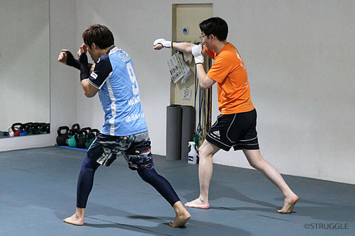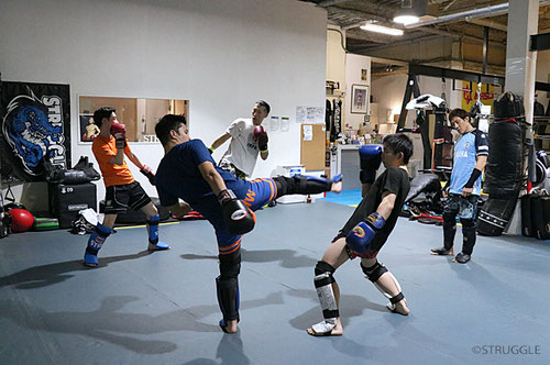 その後、マススパーリング後のスタッフ達も合流して、スウェーバックやキャッチなど蹴り技の基本ディフェンスを練習しました。