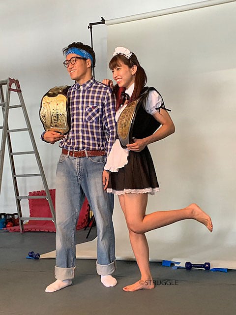 REBELS-BLACK女子46kg級のベルトを獲得したぱんちゃん璃奈のベルト写真を、トップアスリートを数えきれないほど撮影しているプロカメラマン 保高幸子さんに撮っていただき
